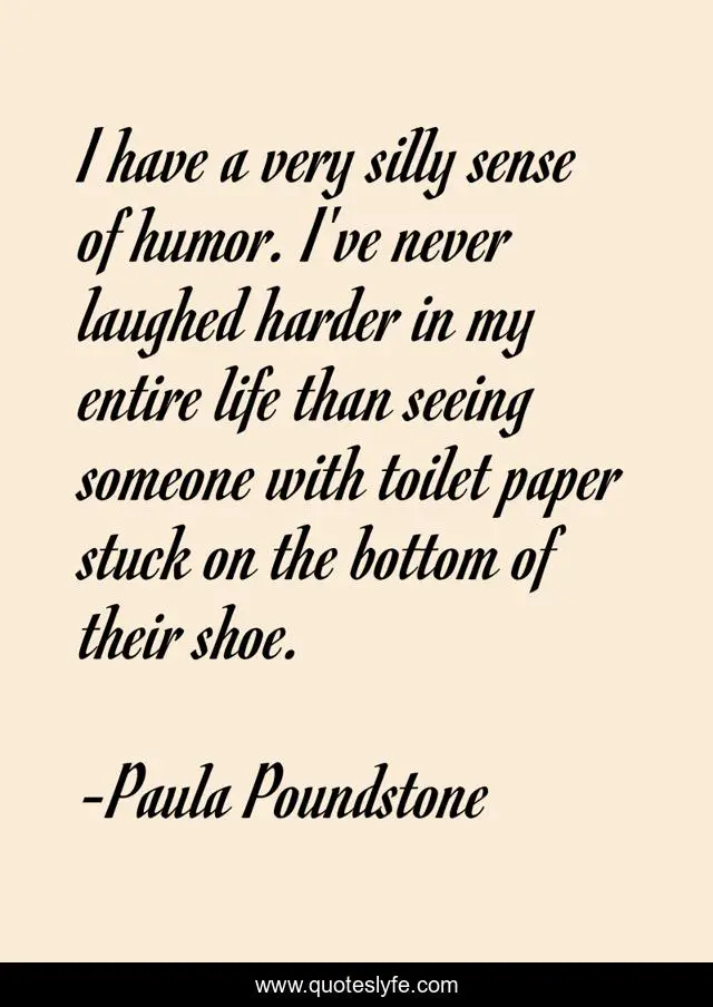 This page presents the quote "I have a very silly sense of humor. I've never laughed harder in my entire life than seeing someone with toilet paper stuck on the bottom of their shoe.". Author of this quote is Paula Poundstone. This quote is about life, silly, sense of humor,.