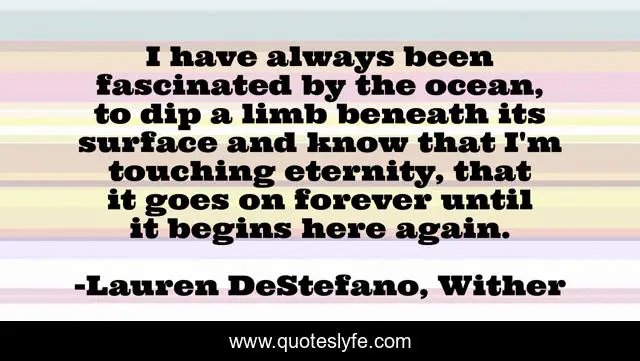 This page presents the quote "I have always been fascinated by the ocean, to dip a limb beneath its surface and know that I'm touching eternity, that it goes on forever until it begins here again.". Author of this quote is Lauren DeStefano, Wither. .