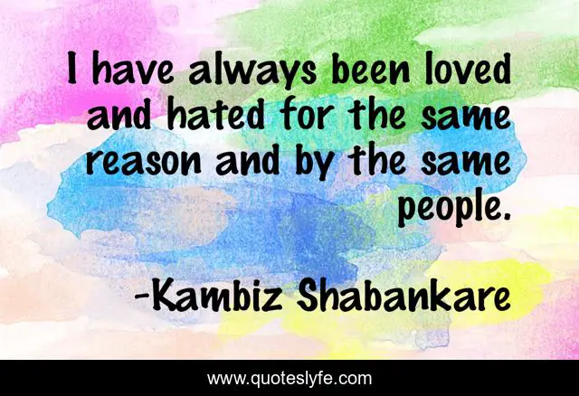 This page presents the quote "I have always been loved and hated for the same reason and by the same people.". Author of this quote is Kambiz Shabankare. This quote is about hate, love, affection, people,.