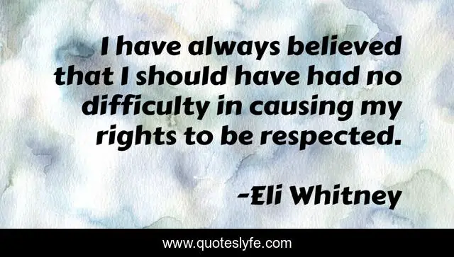 This page presents the quote "I have always believed that I should have had no difficulty in causing my rights to be respected.". Author of this quote is Eli Whitney. This quote is about always, rights, difficulty,.