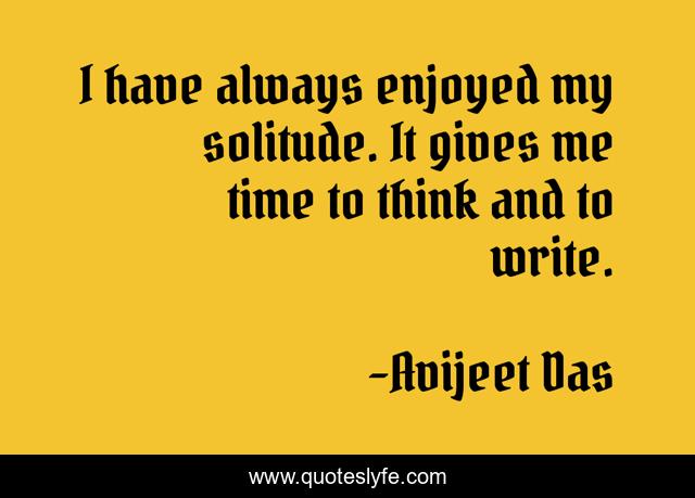 This page presents the quote "I have always enjoyed my solitude. It gives me time to think and to write.". Author of this quote is Avijeet Das. This quote is about own-company, solitude, enjoyment, writer, life-and-sayings, thinking, writers, life-lessons, writers-on-writing,.