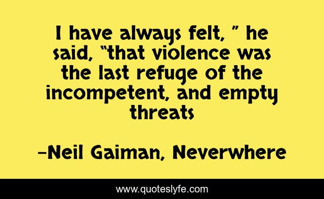 This page presents the quote "I have always felt, ” he said, “that violence was the last refuge of the incompetent, and empty threats". Author of this quote is Neil Gaiman, Neverwhere. .