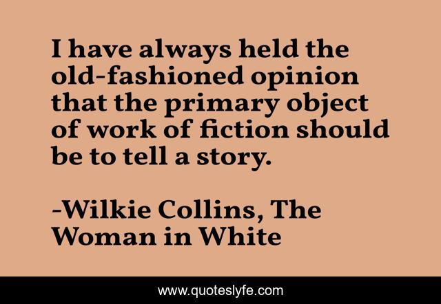 This page presents the quote "I have always held the old-fashioned opinion that the primary object of work of fiction should be to tell a story.". Author of this quote is Wilkie Collins, The Woman in White. This quote is about storytelling, fiction, inspirational, enthusiasm, writing, on-fiction,.