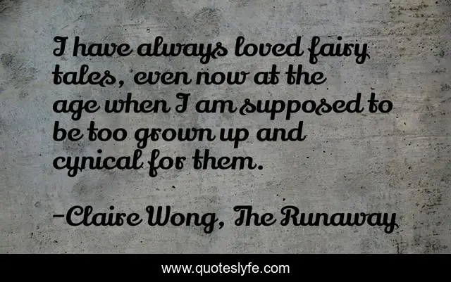 This page presents the quote "I have always loved fairy tales, even now at the age when I am supposed to be too grown up and cynical for them.". Author of this quote is Claire Wong, The Runaway. This quote is about grown-up, love, cynical, loved, childish, fairy-tale, maturity, fairy-tales, runaway,.