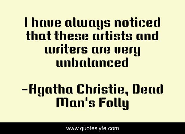 This page presents the quote "I have always noticed that these artists and writers are very unbalanced". Author of this quote is Agatha Christie, Dead Man's Folly. This quote is about artist, writer, writers, unbalanced,.