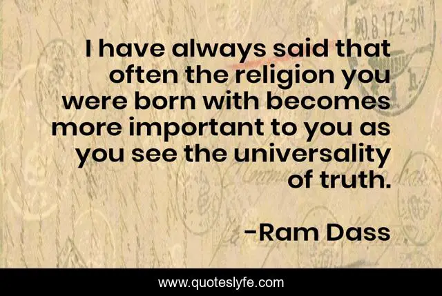 This page presents the quote "I have always said that often the religion you were born with becomes more important to you as you see the universality of truth.". Author of this quote is Ram Dass. This quote is about born, truth,.