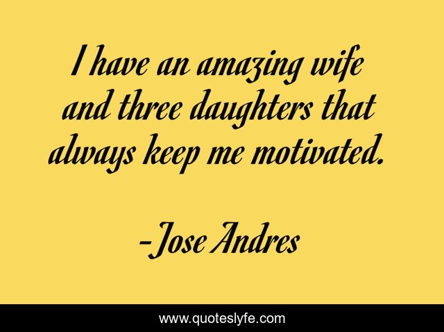This page presents the quote "I have an amazing wife and three daughters that always keep me motivated.". Author of this quote is Jose Andres. This quote is about me, three, wife,.