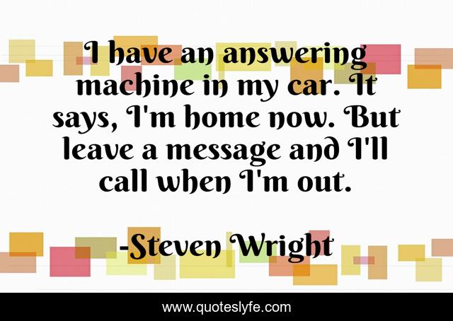 This page presents the quote "I have an answering machine in my car. It says, I'm home now. But leave a message and I'll call when I'm out.". Author of this quote is Steven Wright. This quote is about machine, home, message,.