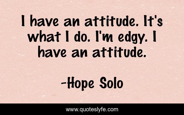 This page presents the quote "I have an attitude. It's what I do. I'm edgy. I have an attitude.". Author of this quote is Hope Solo. .