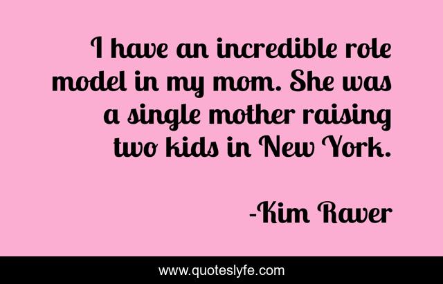 This page presents the quote "I have an incredible role model in my mom. She was a single mother raising two kids in New York.". Author of this quote is Kim Raver. This quote is about new york, role model, mother,.