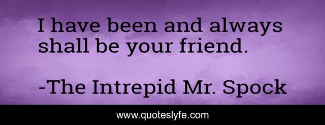 This page presents the quote "I have been and always shall be your friend.". Author of this quote is The Intrepid Mr. Spock. This quote is about sacrifice, military-science-fiction, friendship, science-fiction, star-trek,.