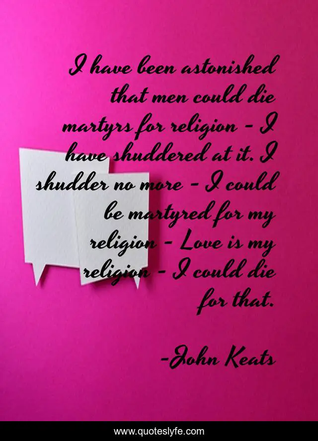 This page presents the quote "I have been astonished that men could die martyrs for religion - I have shuddered at it. I shudder no more - I could be martyred for my religion - Love is my religion - I could die for that.". Author of this quote is John Keats. This quote is about men, love, affection, love is,.
