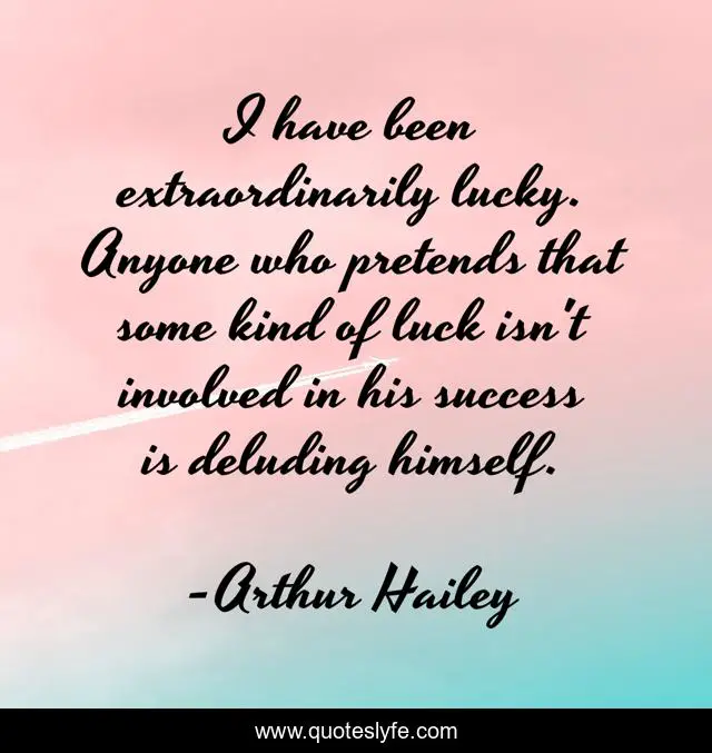 This page presents the quote "I have been extraordinarily lucky. Anyone who pretends that some kind of luck isn't involved in his success is deluding himself.". Author of this quote is Arthur Hailey. .