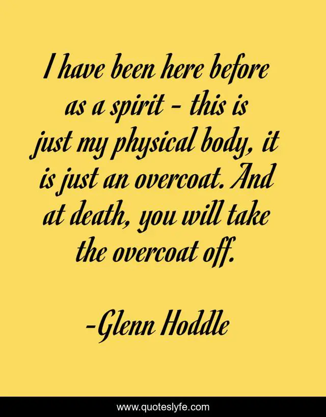 This page presents the quote "I have been here before as a spirit - this is just my physical body, it is just an overcoat. And at death, you will take the overcoat off.". Author of this quote is Glenn Hoddle. This quote is about body, here,.