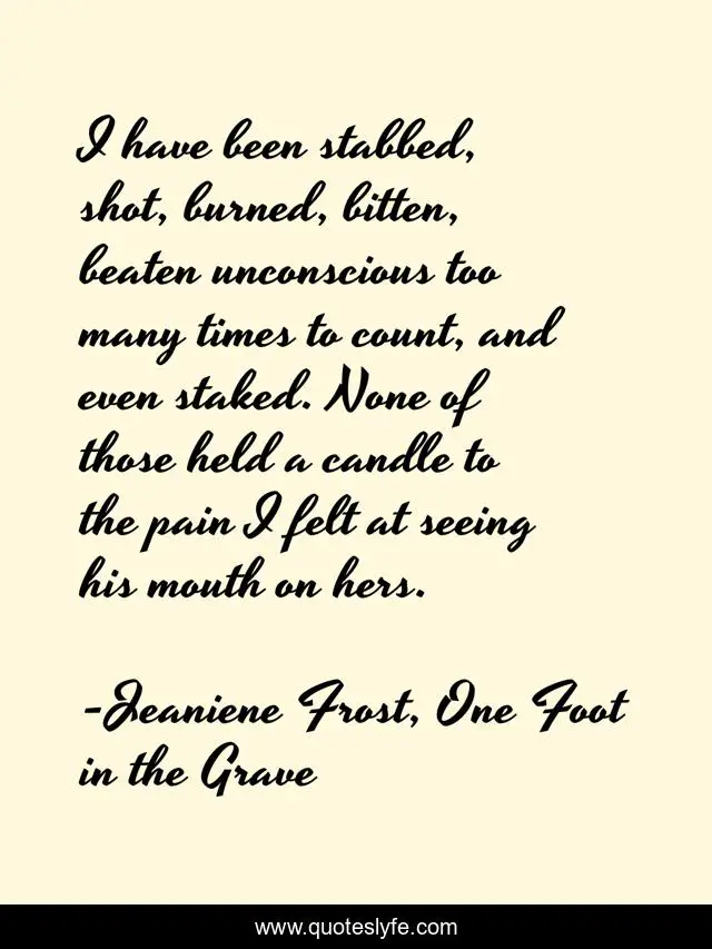 "Jeaniene Frost, One Foot in the Grave Quotes." Quoteslyfe.com, 2025. Mon. 08 Dec. 2025. <https://www.quoteslyfe.com/quote/I-have-been-stabbed-shot-burned-bitten-5846>.