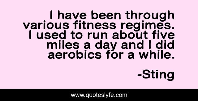 This page presents the quote "I have been through various fitness regimes. I used to run about five miles a day and I did aerobics for a while.". Author of this quote is Sting. This quote is about run, through, day,.
