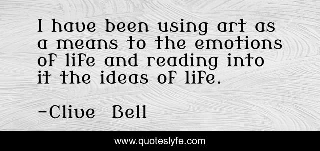 This page presents the quote "I have been using art as a means to the emotions of life and reading into it the ideas of life.". Author of this quote is Clive Bell. This quote is about life, aesthetics, art, emotions,.