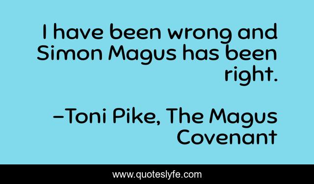 This page presents the quote "I have been wrong and Simon Magus has been right.". Author of this quote is Toni Pike, The Magus Covenant. This quote is about magus, wrong, right,.