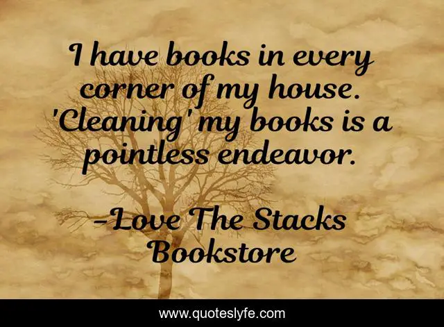 This page presents the quote "I have books in every corner of my house. 'Cleaning' my books is a pointless endeavor.". Author of this quote is Love The Stacks Bookstore. .