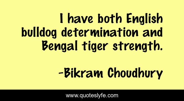This page presents the quote "I have both English bulldog determination and Bengal tiger strength.". Author of this quote is Bikram Choudhury. This quote is about tiger, determination,.