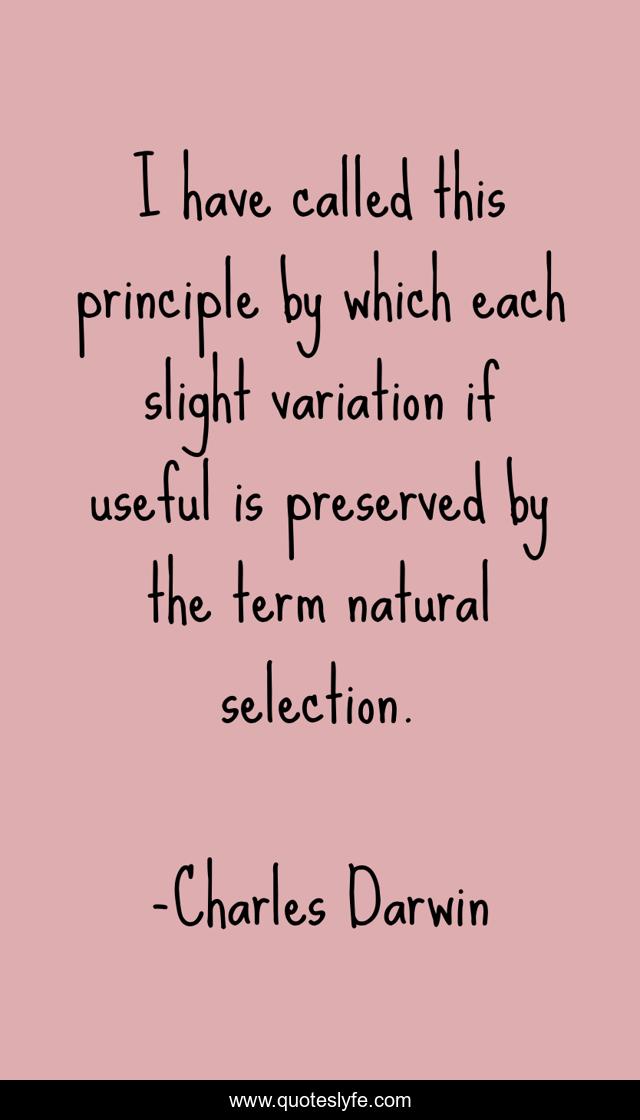 I have called this principle by which each slight variation if useful is preserved by the term natural selection.