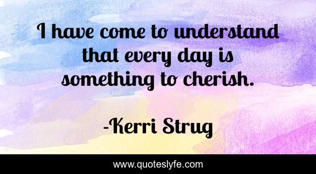 This page presents the quote "I have come to understand that every day is something to cherish.". Author of this quote is Kerri Strug. This quote is about day, one,.