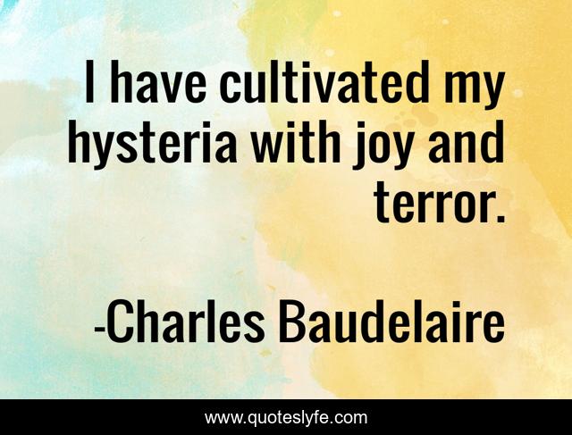 This page presents the quote "I have cultivated my hysteria with joy and terror.". Author of this quote is Charles Baudelaire. This quote is about writers, writing,.