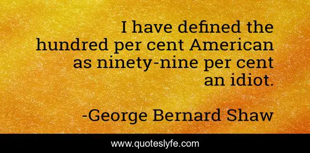 This page presents the quote "I have defined the hundred per cent American as ninety-nine per cent an idiot.". Author of this quote is George Bernard Shaw. This quote is about american, stupidity,.