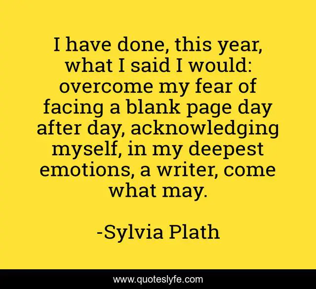 This page presents the quote "I have done, this year, what I said I would: overcome my fear of facing a blank page day after day, acknowledging myself, in my deepest emotions, a writer, come what may.". Author of this quote is Sylvia Plath. .