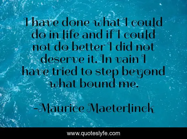 This page presents the quote "I have done what I could do in life and if I could not do better I did not deserve it. In vain I have tried to step beyond what bound me.". Author of this quote is Maurice Maeterlinck. This quote is about realistic, expectations,.
