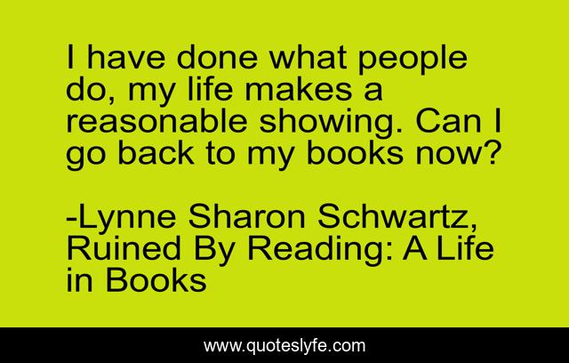 This page presents the quote "I have done what people do, my life makes a reasonable showing. Can I go back to my books now?". Author of this quote is Lynne Sharon Schwartz, Ruined By Reading: A Life in Books. This quote is about work, books, reading,.