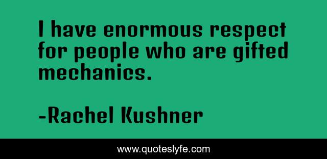 This page presents the quote "I have enormous respect for people who are gifted mechanics.". Author of this quote is Rachel Kushner. This quote is about mechanics, gifted, people,.