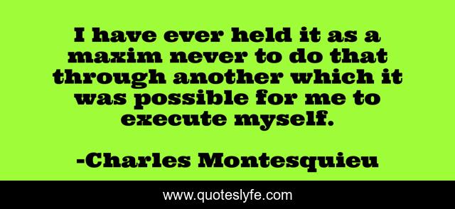 This page presents the quote "I have ever held it as a maxim never to do that through another which it was possible for me to execute myself.". Author of this quote is Charles Montesquieu. This quote is about self, reliance,.