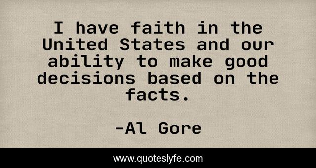 This page presents the quote "I have faith in the United States and our ability to make good decisions based on the facts.". Author of this quote is Al Gore. This quote is about facts, good, decisions,.
