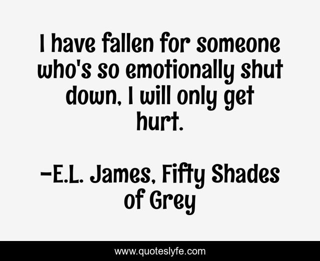 This page presents the quote "I have fallen for someone who's so emotionally shut down, I will only get hurt.". Author of this quote is E.L. James, Fifty Shades of Grey. This quote is about love, 50-shades-of-grey, affection, hurt,.