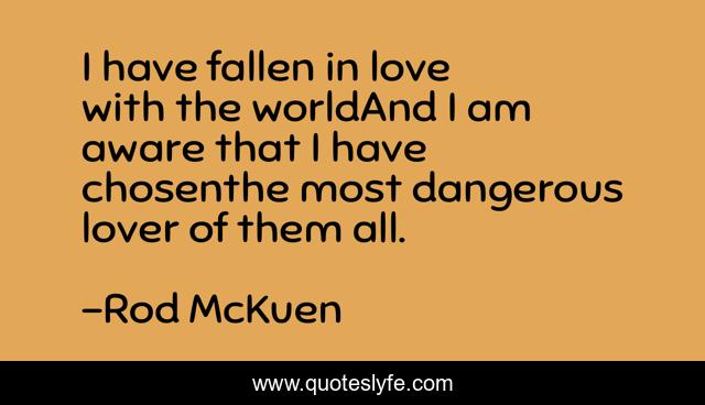 This page presents the quote "I have fallen in love with the worldAnd I am aware that I have chosenthe most dangerous lover of them all.". Author of this quote is Rod McKuen. .