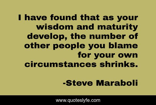 This page presents the quote "I have found that as your wisdom and maturity develop, the number of other people you blame for your own circumstances shrinks.". Author of this quote is Steve Maraboli. This quote is about blame, maturity, wisdom,.