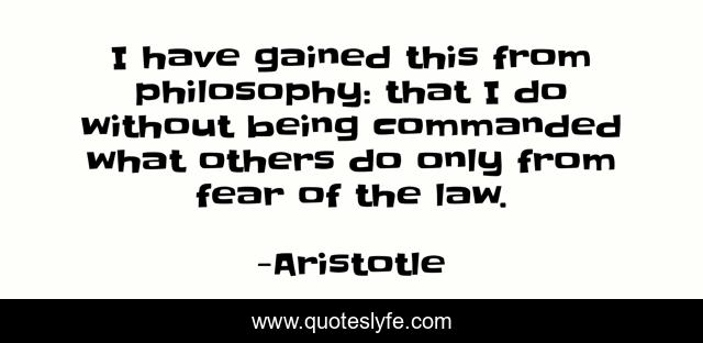 This page presents the quote "I have gained this from philosophy: that I do without being commanded what others do only from fear of the law.". Author of this quote is Aristotle. This quote is about law, philosophy, without,.