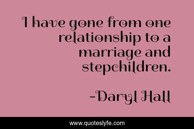 This page presents the quote "I have gone from one relationship to a marriage and stepchildren.". Author of this quote is Daryl Hall. This quote is about gone, relationship,.