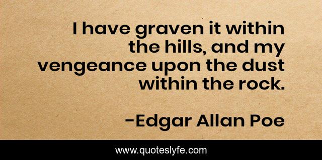 This page presents the quote "I have graven it within the hills, and my vengeance upon the dust within the rock.". Author of this quote is Edgar Allan Poe. This quote is about closing-line, sea-tales, horror, poe, biblical,.