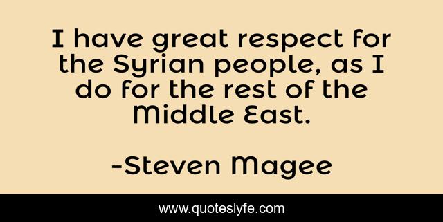 This page presents the quote "I have great respect for the Syrian people, as I do for the rest of the Middle East.". Author of this quote is Steven Magee. This quote is about great, people, rest, middle, respect, east, syrian,.