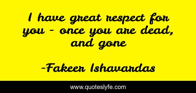 "Fakeer Ishavardas Quotes." Quoteslyfe.com, 2025. Sun. 07 Dec. 2025. <https://www.quoteslyfe.com/quote/I-have-great-respect-for-you-once-214954>.