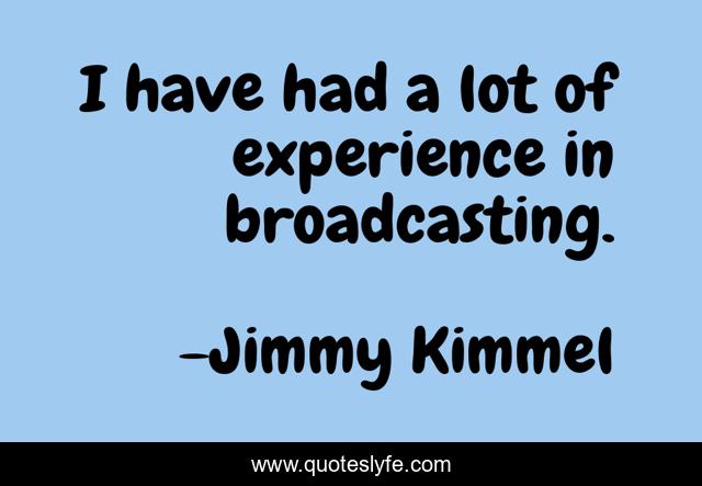 This page presents the quote "I have had a lot of experience in broadcasting.". Author of this quote is Jimmy Kimmel. This quote is about broadcasting, had, lot,.