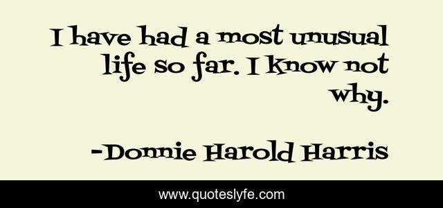 This page presents the quote "I have had a most unusual life so far. I know not why.". Author of this quote is Donnie Harold Harris. This quote is about i, life, why,.