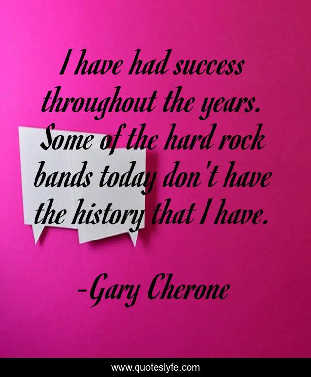 This page presents the quote "I have had success throughout the years. Some of the hard rock bands today don't have the history that I have.". Author of this quote is Gary Cherone. This quote is about success, today, rock,.