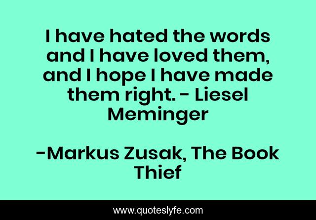 "Markus Zusak, The Book Thief Quotes." Quoteslyfe.com, 2025. Fri. 05 Dec. 2025. <https://www.quoteslyfe.com/quote/I-have-hated-the-words-and-I-113214>.