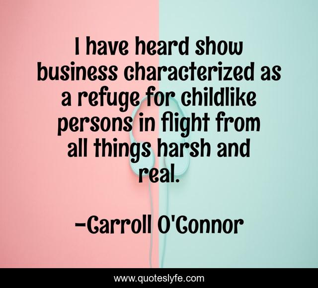 This page presents the quote "I have heard show business characterized as a refuge for childlike persons in flight from all things harsh and real.". Author of this quote is Carroll O'Connor. This quote is about real, flight, show,.