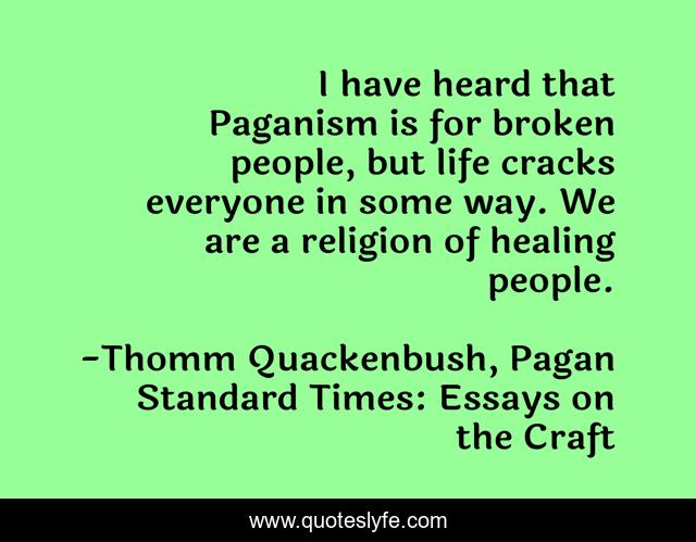 This page presents the quote "I have heard that Paganism is for broken people, but life cracks everyone in some way. We are a religion of healing people.". Author of this quote is Thomm Quackenbush, Pagan Standard Times: Essays on the Craft. This quote is about life, broken, religion, healing, paganism, pagan,.