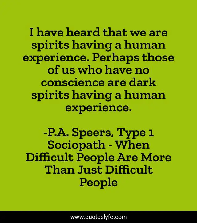 "P.A. Speers, Type 1 Sociopath - When Difficult People Are More Than Just Difficult People Quotes." Quoteslyfe.com, 2025. Fri. 05 Dec. 2025. <https://www.quoteslyfe.com/quote/I-have-heard-that-we-are-spirits-103746>.