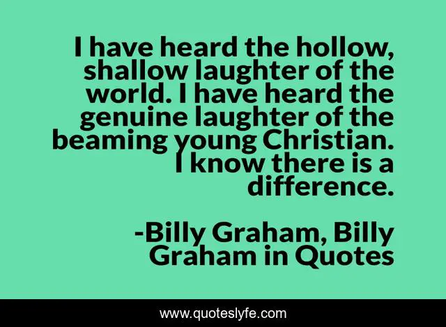 This page presents the quote "I have heard the hollow, shallow laughter of the world. I have heard the genuine laughter of the beaming young Christian. I know there is a difference.". Author of this quote is Billy Graham, Billy Graham in Quotes. This quote is about the-world, billy-graham,.